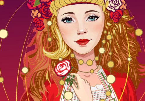 Task: To draw a pretty young girl. Have a rose element due to the specifics of the product for which the creative is intended.