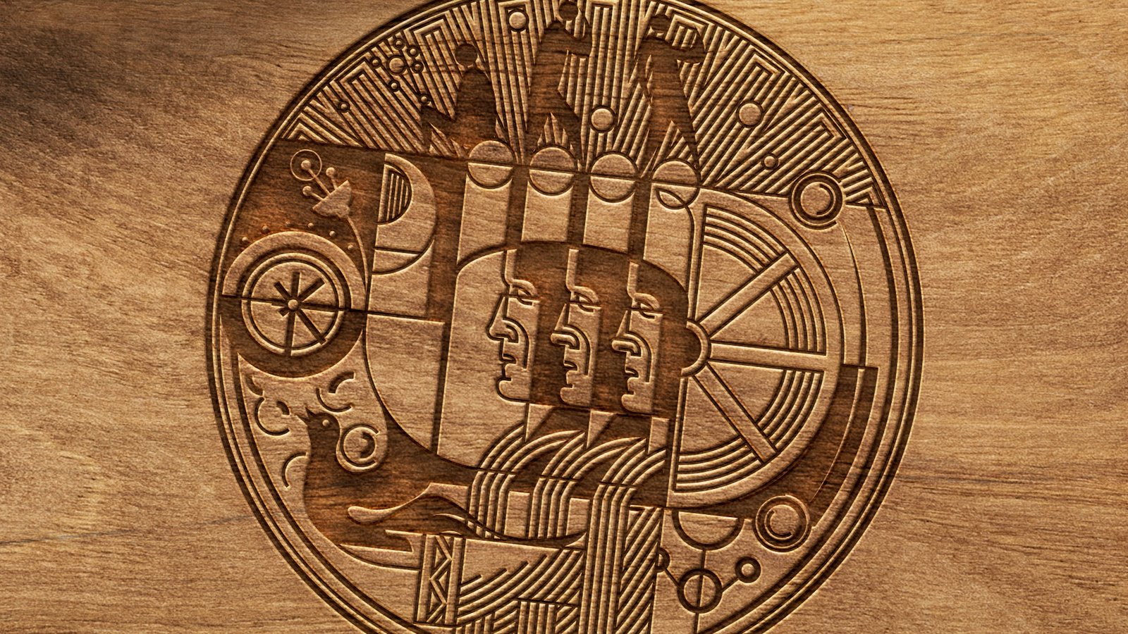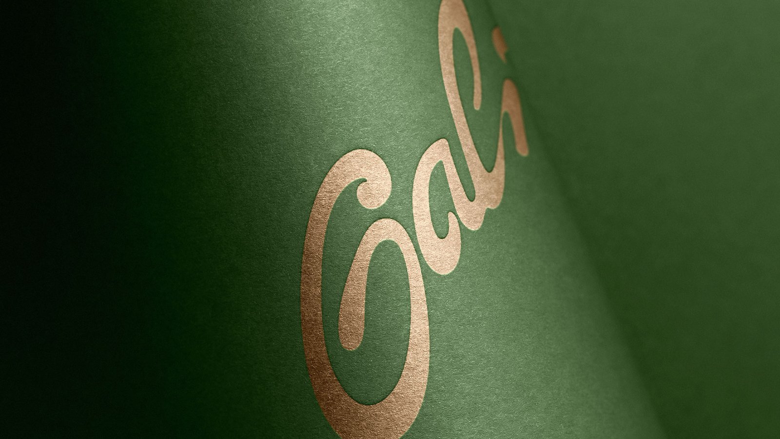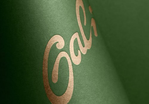 Design work: A custom inscription that weaves into itself the name of the brand. It is designed to create a retro feeling of handmade metal engraving. The color palette includes deep, rich colors such as golds and dark greens to evoke a sense of luxury and sophistication.
