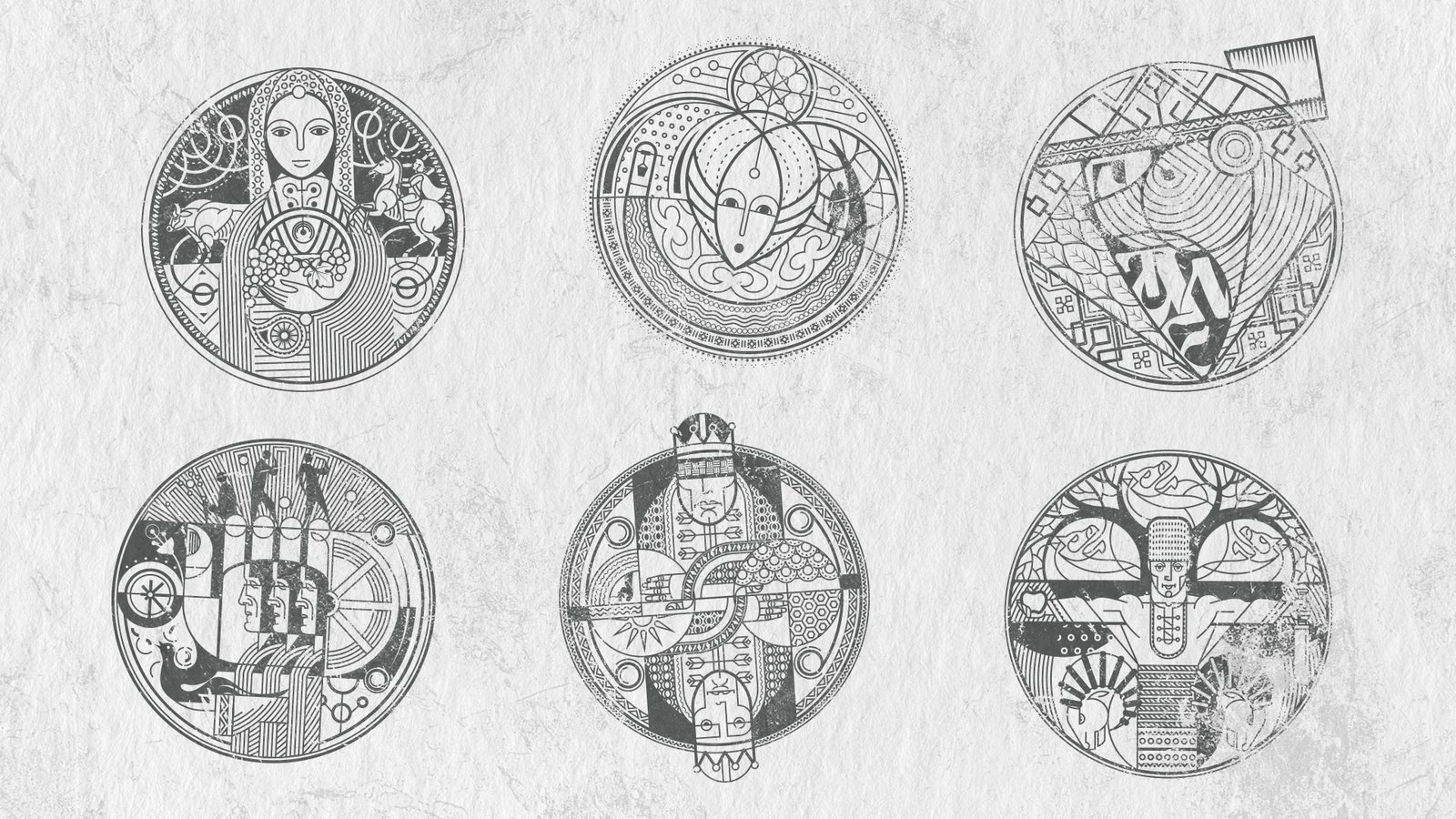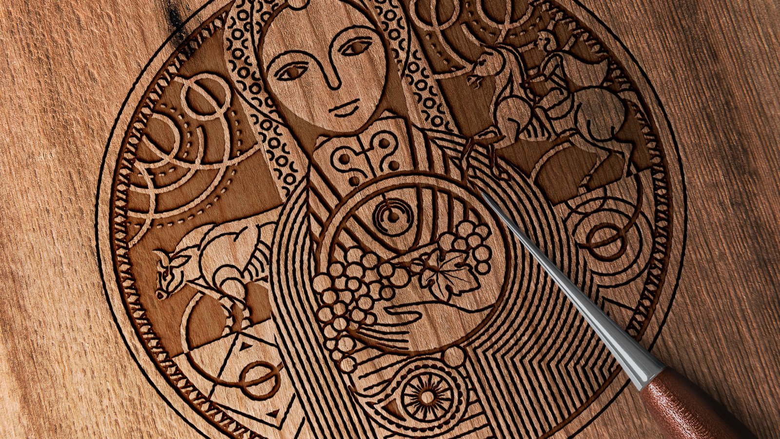 Task: To develop a series of six visions illustrating popular Bulgarian folk tales. They should be suitable for engraving and printing on various surfaces (leather, wood, cardboard, etc.).