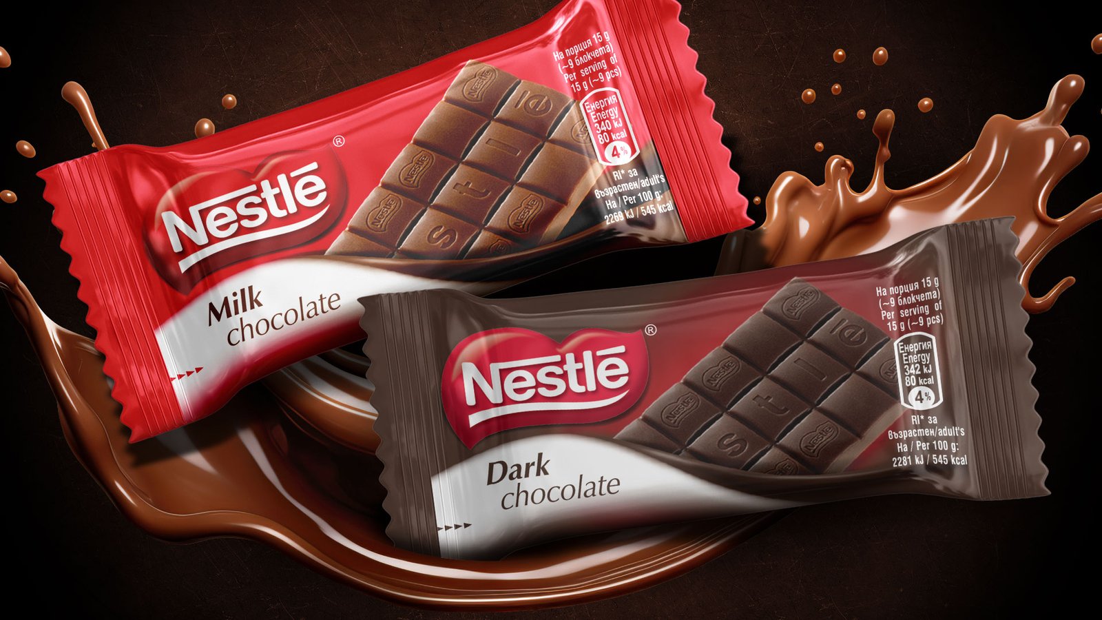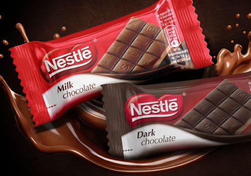 Task: Redesign of chocolate packaging. The general location of the elements is preserved, but the new larger nutrition information must be placed. The name of the product should be more readable. The picture of the product should be larger.