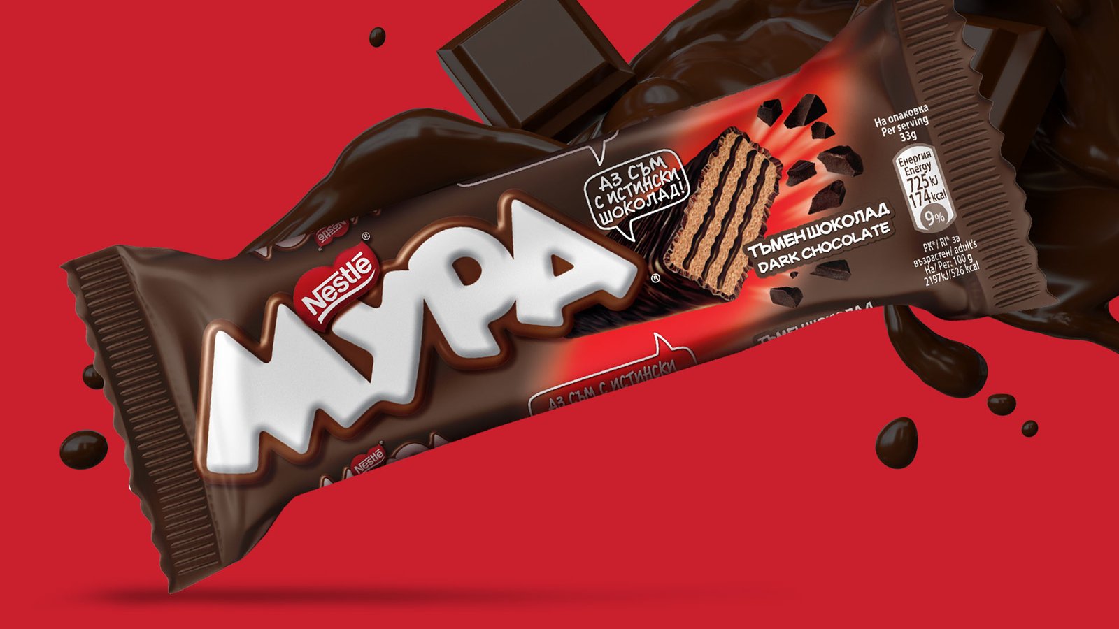 Task: Design of wafer packaging with dark chocolate and hazelnut flavors from the Mura series.