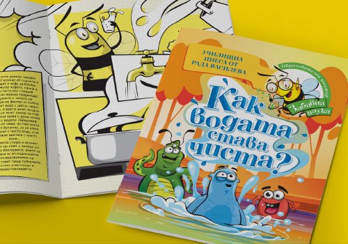 Realization of the project: Colors such as orange, yellow, and green have been utilized, not only appealing to children but also associating with nature. The main character, the bee, is designed in an cartoon style, allowing it to serve as an illustration or part of one in the future. A playful yet easily readable font has been chosen, ensuring legibility even at a smaller size.