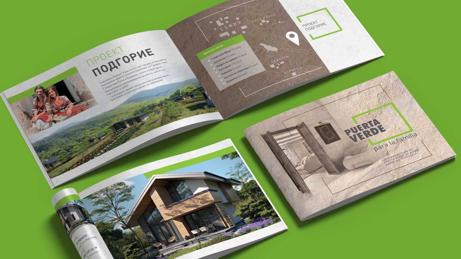 Task: To design a catalog with the projects of an investor dealing with eco-friendly construction.